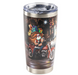 Stainless steel travel mug featuring festive Biker Santa design and Bar & Shield logo