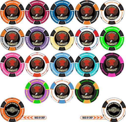 Moonshine Poker Chips Product Details Take home a piece of Moonshine Harley-Davidson® with our exclusive Moonshine Poker Chips. Each chip fea...